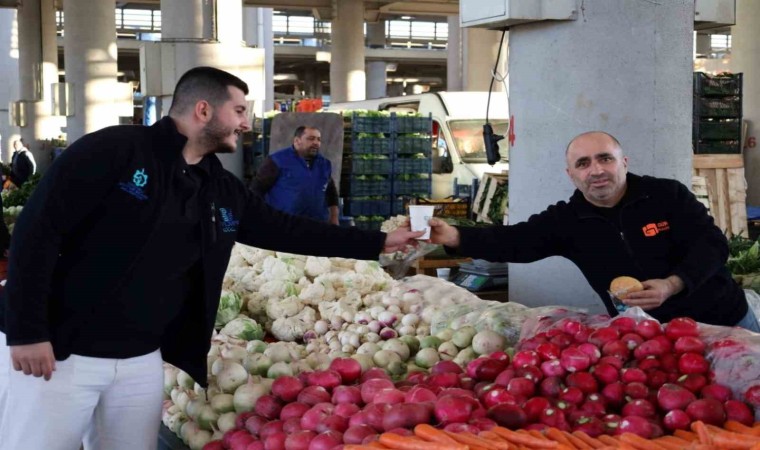 Kocaeli Büyükşehir Belediyesi, sabah erken saatte tezgah kuran pazarcı esnafına çorba dağıttı.