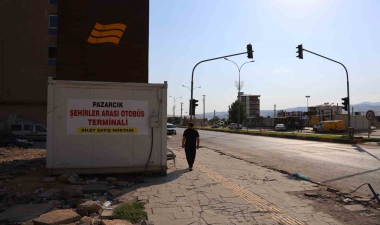 Kahramanmaraş’ın Pazarcık ilçesindeki otobüs terminali konteynerde hizmetini sürdürüyor.