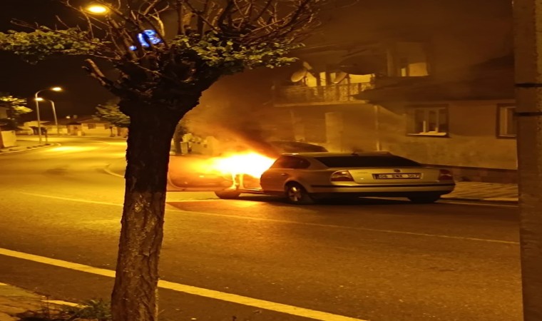 Bilecik’in Pazaryeri ilçesinde alevlere teslim olan otomobil kullanılımaz hale geldi.