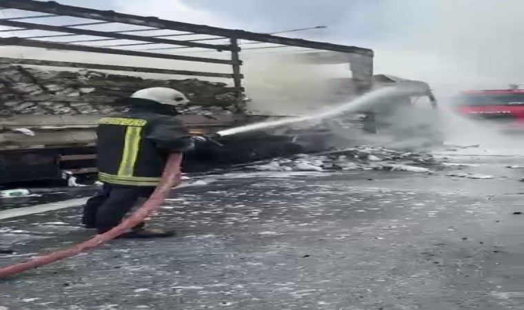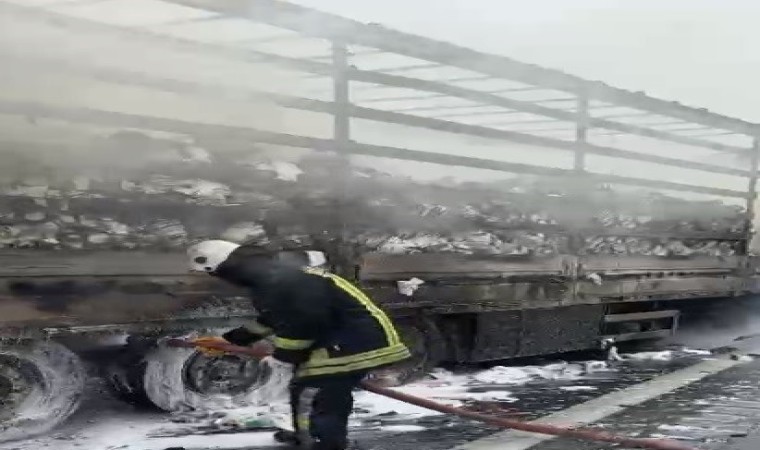 Mersin’in Tarsus ilçesinde peçete yüklü tır yandı.