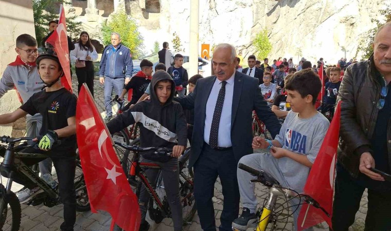 Cumhuriyet Bayramı kutlama etkinlikler çerçevesinde düzenlenen bisiklet turunun ardından konuşma yapan Kaymakam Ramazan Polat ve Belediye Başkanı İsmail Çizikci, birlik ve beraberlik mesajları verdi.