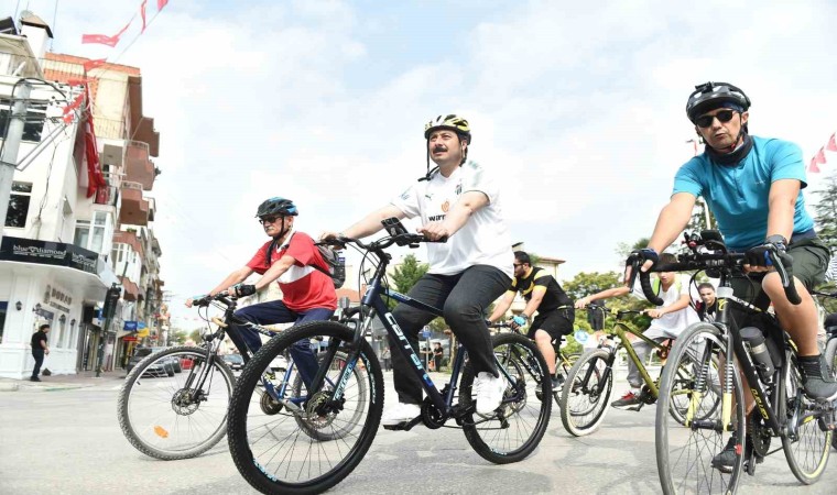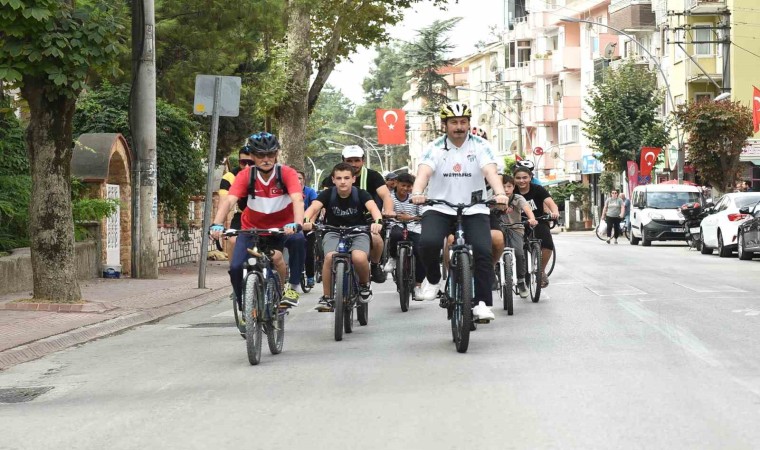 Osmangazi Millet Bahçesi’nde buluşan bisikletliler, Yenişehir’in kurtuluşu için pedal çevirdi.