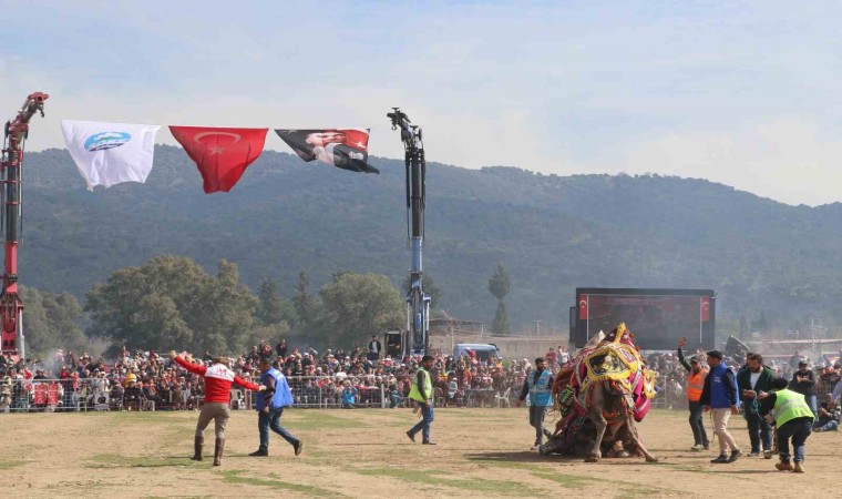 Aydın’da kış mevsiminin en önemli festivalleri arasında yer alan deve güreşleri sezonu devam ederken Bağarası Güreşi’nde arenaya çıkan pehlivan develer kıyasıya mücadele etti.