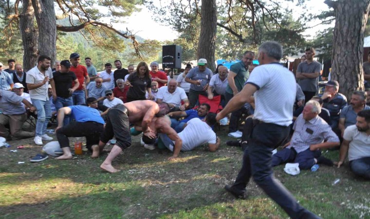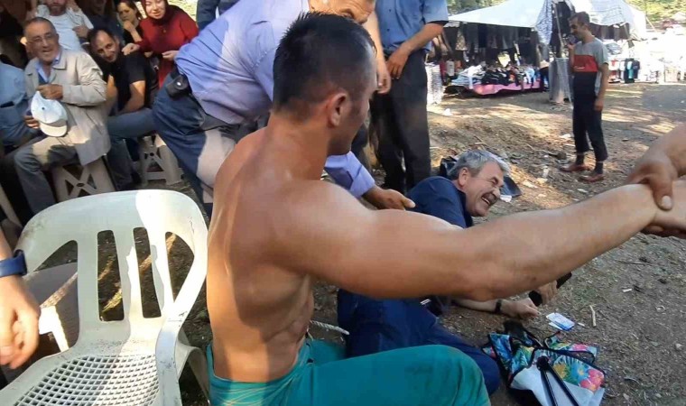 Bolu’nun Mudurnu ilçesinde Şimşir Bayramı’nda güreşen iki güreşçiden biri, yanlışlıkla rakibi sandığı vatandaşı yere serdi. O anları gören vatandaşlar kahkahaya boğuldu.