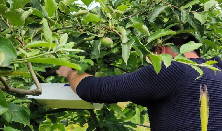 Kırklareli’ne bağlı Pehlivanköy ilçesinde, meyvecilik yapılan bahçelerdeki ağaçlara feromon tuzaklar asıldı.