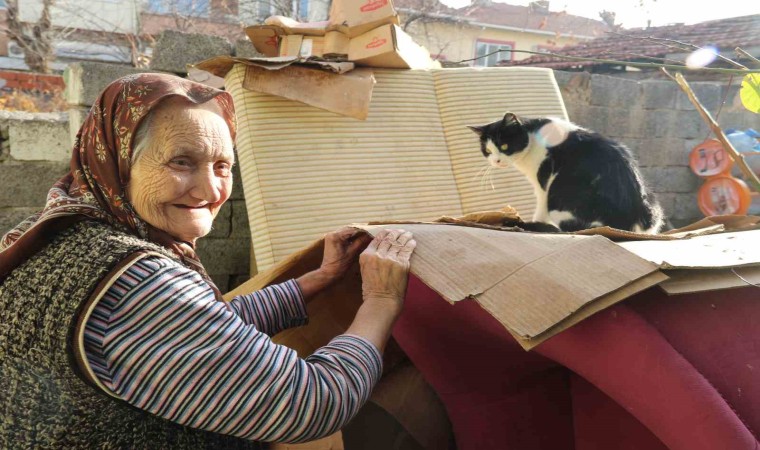 “Oğlumla beraber yaşıyorum. İki oğlum öldü. Oğlum çalışmıyor, kağıt topluyor. Sadece bir emekli maaşı alıyorum. Evimizin tavanı akıyor ama akmasa daha iyi, o sıkıntımız var. Evin çatısı göçtü o yüzden tuvalet hep soğuk esiyor, çok zorlanıyoruz. Kış da tabii zor. Allah’a şükür hasta değilim sapasağlamım, bir tek tansiyonum var başka hiç hastalığım yok. Evin çatısının yapılmasını isterim, kışın çok zor oluyor. Oğlum her yere karton koydu, evin diğer tarafları da kar yağdığında akıyor. Bu ev bana beyimden miras kaldı. 1 sene sonra 80’e gireceğim, şu an 79 yaşındayım. Oğlum da 58 yaşında. Daha önce oğullarımın biri kalp krizi geçirdi, diğeri de sulama kanalına düştü. Bir tane de kızım vardı kayıp, 20 sene oldu. Hala haber yok. Almanya’da doğmuştu. Biz de eşimle Almanya’da 7-8 sene kaldık. Daha sonra oğlanların okulu var diye, 1966 senesinde geldik. Sadece tavanımızın yapılmasını istiyoruz, kışın çok zor oluyor.”