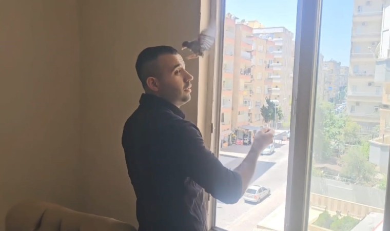 Şanlıurfa’da açık pencereden içeri giren serçe dışarı bırakıldığında eve geri dönüyor.