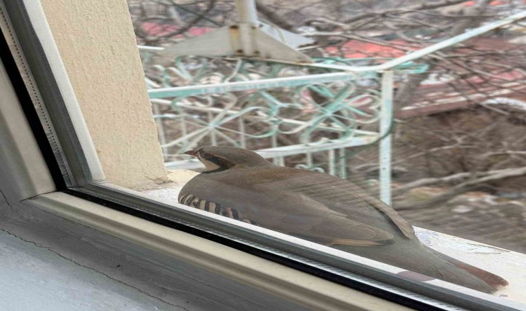 Tunceli’nin Çemişgezek ilçesinde, sabahın erken saatlerinde evinin perdesini açan aile, penceresinde kınalı keklik ile karşılaştı.
