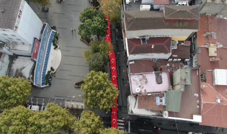 Pendik’te 29 Ekim Cumhuriyet’in 100’üncü yıl kutlamaları kapsamında yürüyüş düzenlendi. Yüzlerce öğrenci ve vatandaşın katıldığı yürüyüşte 100 metrelik dev Türk bayrağı kortej eşliğinde taşındı.