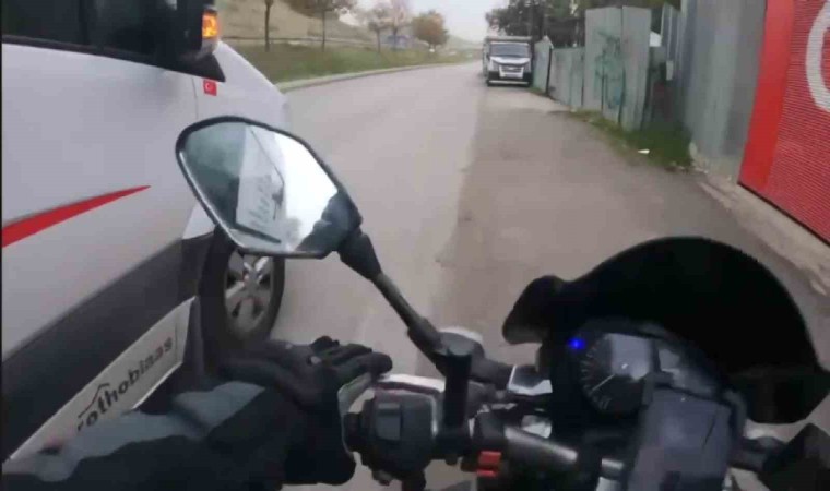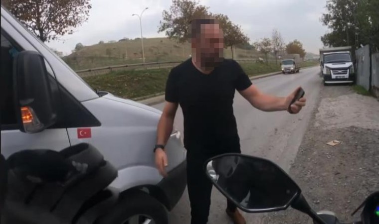 Pendik’te yayalara yol verdiği sırada arkasında duran servis minibüsüne dönüp bakan motosikletli ile minibüs sürücüsü arasında tartışma çıktı. Motosikletliyi yolda sıkıştırarak durduran minibüs sürücüsü ‘ben sana korna mı çaldım neden dönüp bakıyorsun’ diyerek tepki gösterdi. Yaşanan tartışma kask kamerasına yansıdı.