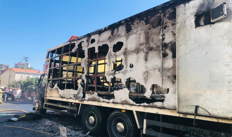 Pendik’te park halindeki nakliye kamyonu, araç sürücünün eşya taşıdığı sırada alev aldı. Kısa sürede büyüyen alevler aracı sardı. Can kaybı ya da yaralanmanın yaşanmadığı olayda araç kullanılamaz hale geldi. Yangın esnasında yükselen alevler yakın noktada bulunan iki katlı bir eve de zarar verdi.