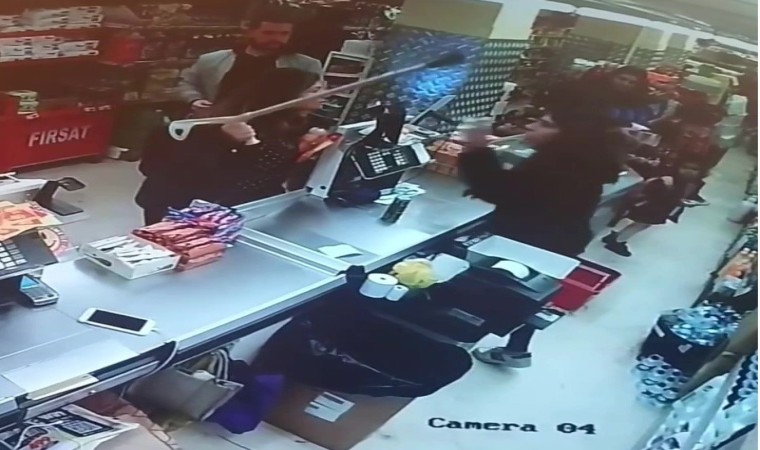 Pendik’te bir markette alışveriş yapan kadın müşteri aldığı ürünün etiket fiyatı ile kasadaki fiyatı farklı çıkınca kasiyere koltuk değneğiyle saldırdı. Market ortasındaki kavga güvenlik kamerasına saniye saniye yansıdı.