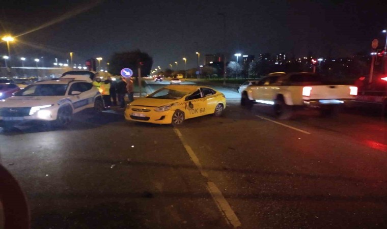 Pendik’te kontrolden çıkan ticari taksinin bir otomobille çarpıştığı kazada 1 kişi yaralandı.