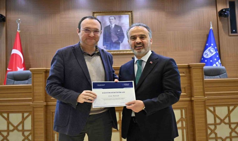 Bursa Büyükşehir Belediyesi’nin kurum içi eğitim faaliyetlerini başarıyla tamamlayan personel, düzenlenen törenle sertifikalarını aldı. Personele sertifikalarını bizzat kendi veren Bursa Büyükşehir Belediye Başkanı Alinur Aktaş, eğitim çalışmalarının aralıksız devam edeceğini vurguladı.