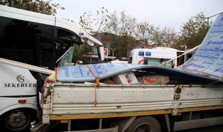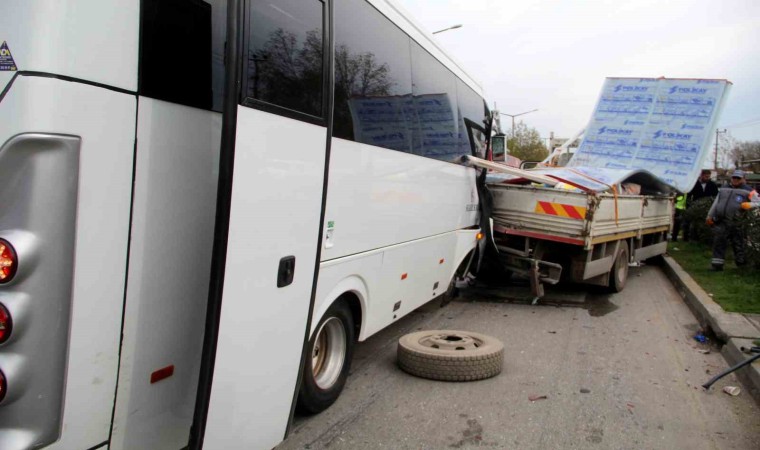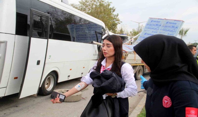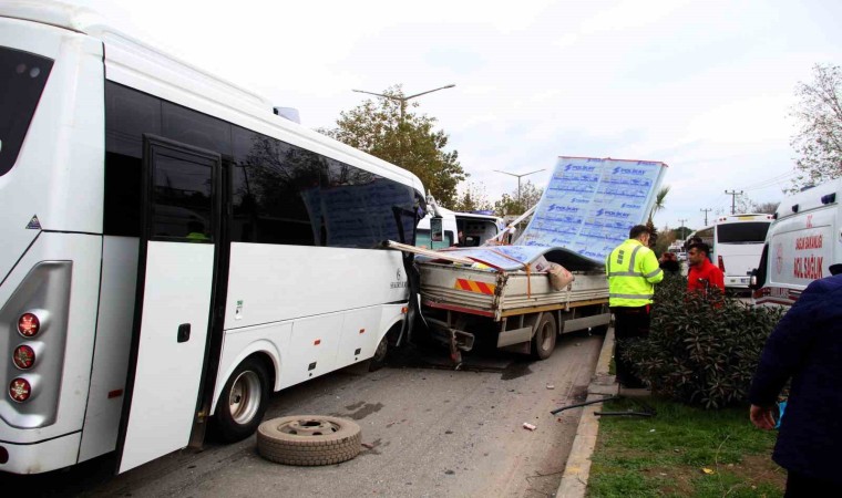 Kaza, saat 13. 30 sırasında Muratpaşa ilçesi Kızılarık Mahallesi Gazi Bulvarı üzerinde meydana geldi. Antalya Havalimanı’na personel götüren Türkay A. idaresindeki 07 C 2175 plakalı midibüs, aynı yönde ilerleyen ve üzeri inşaat malzemesi yüklü olan 07 FKJ Atilla K. idaresindeki kamyonete arkadan çarptı. Çarpmanın etkisiyle midibüsün sağ tarafı hurdaya döndü ve sürücü dahil iki kişi sıkıştı. Kazayı görenler durumu 112 Acil Çağrı Merkezine bildirdi. İhbarla adrese çok sayıda polis, itfaiye ve sağlık ekibi sevk edildi. Kamyonet sürücüsü ve 7 kişi kendi imkanlarıyla araçlardan çıkarken, iki kişiyi sıkıştığı yerden kurtarmak için çalışma başlatıldı. İtfaiye yaklaşık yarım saatlik çalışmayla önce Bülent A. ve ardından sürücüyü sıkıştığı yerden çıkardı. Midibüsün ön camından alınan yaralı, ardından ambulansa alındı. Sürücü Türkay A. ise aracın arka kapısından indirilip ambulansa götürüldü. Çoğunluğu kafa bölümünden yaralı olan Kübra K., Fatma Ç., Şefik A., Halime A., Soner S., Esma A. ve Bülent A. ambulanslarla hastaneye kaldırıldı. Feci kazada muavin bölümünde kimsenin olmaması can kaybını önledi. Yaralıların sağlık durumunun iyi olduğu öğrenilirken, kazayla ilgili inceleme başlatıldı.