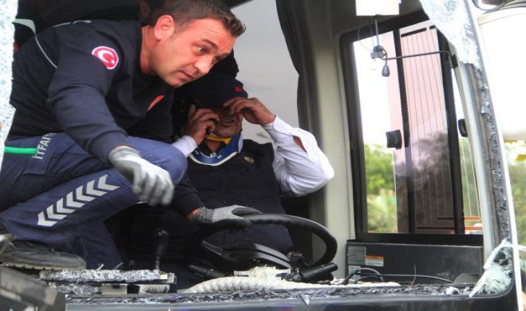 Antalya’da havalimanına personel taşıyan midibüsün kamyonete arkadan çarpması sonucu meydana gelen kazada 9 kişi yaralandı. Midibüs içinde sıkışan sürücü ve bir kişi itfaiye ekiplerince yarım saatlik çalışmayla kurtarıldı. Kaza anı güvenlik kamerasına saniye saniye yansıdı.
