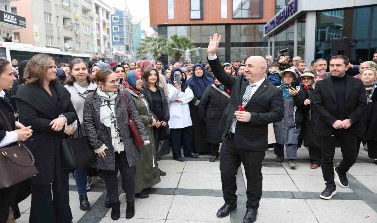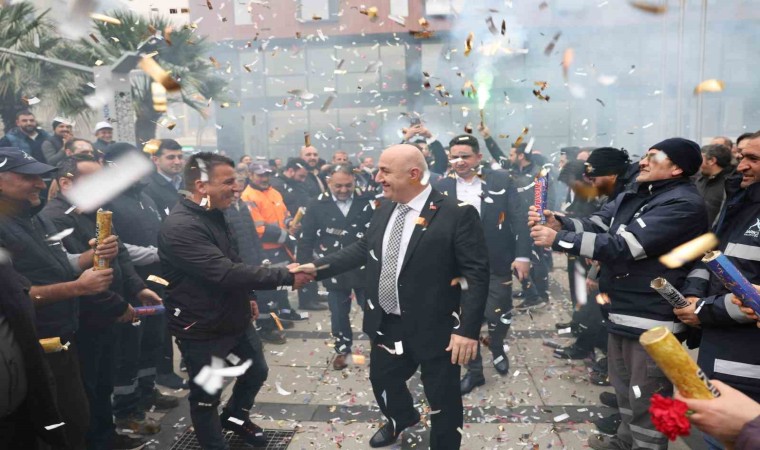 Yeniden aday gösterilen Darıca Belediye Başkanı Muzaffer Bıyık, haftanın ilk mesai gününde belediyeye girişte personeller tarafından çiçeklerle ve meşalelerle karşılandı.