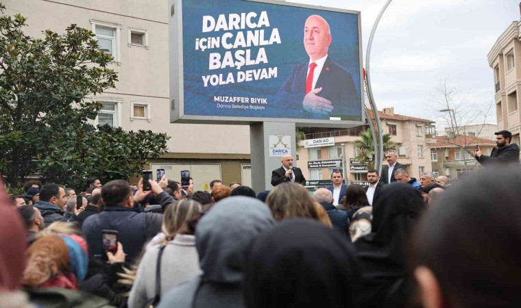 Darıca Belediye Başkanı Muzaffer Bıyık, AK Parti tarafından bir dönem daha belediye başkanlığına aday gösterildi. Aday tanıtım toplantısı sonrası haftanın ilk günü mesaiye gelen Başkan Muzaffer Bıyık’a, belediye girişinde işçiler tarafından sürpriz bir karşılama programı hazırlandı. Muzaffer Bıyık, bina girişinde çiçeklerle ve meşalelerle karşılandı. Alkışlarla işçilerin arasından geçen Başkan Muzaffer Bıyık, teşekkür etti.
