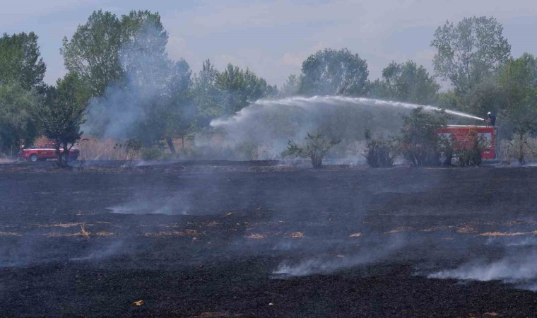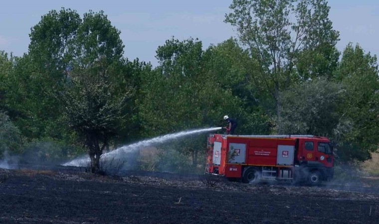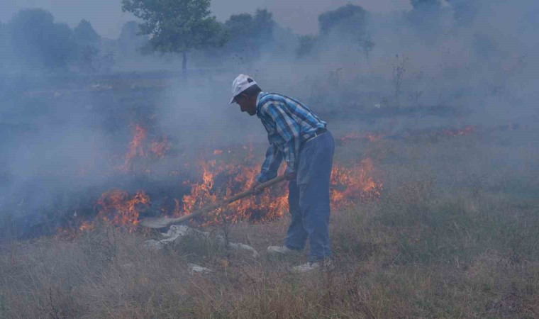 Edirne’de otluk alanda yakılan çekyatlar sebebiyle kısa sürede büyüyen alevleri söndürmek için itfaiye ekiplerinin yanı sıra mahalle halkı da kazma ve kürekle müdahale ederek destek verdi.