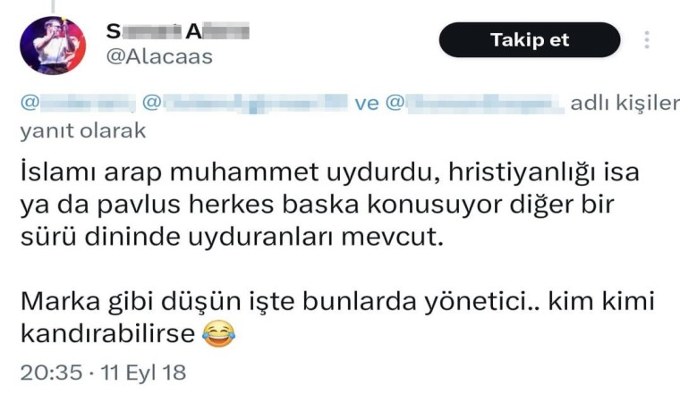 Tekirdağ Büyükşehir Belediyesi’nde yaklaşık 8 aydır çalışan S.A.’ya ait sosyal medya hesabındaki geçmiş paylaşımlarda, dini değerlere, Peygamber Efendimiz’e ve Cumhurbaşkanı’na yönelik hakaret içerikli ifadeler yer alması büyük tepkilere neden oldu. Bu durum, özellikle sosyal medyada geniş yankı uyandırdı. Vatandaşlar ve farklı siyasi kesimler durumu sert şekilde eleştirirken tepkiler devam ediyor.