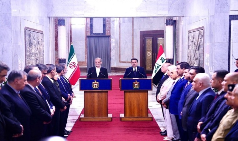İran’ın 14’üncü Cumhurbaşkanı seçilen Mesud Pezeşkiyan, ilk resmi yurt dışı ziyaretini düzenlediği Irak’ta Başbakan Muhammed Şiya Sudani ile basın toplantısı gerçekleştirdi. İran ve Irak arasında şu ana kadar imzalanan anlaşmaların değerli kazanımlar sağladığını söyleyen Cumhurbaşkanı Pezeşkiyan, “İran olarak anlaşmaları düşünce ve inançsal açıdan genişletmeye hazırız” dedi. İçerisinde dostluk ve samimiyetin egemen olduğu bağımsız, güçlü ve güvenli bir Irak istediklerini kaydeden Pezeşkiyan, "Irak, iki ülke arasında söz konusu samimi ilişkiyi sağlayabilecek güvenli ve gelişmiş bir ülke ve birlikte bu noktaya ulaşabileceğimize inanıyoruz" şeklinde konuştu.