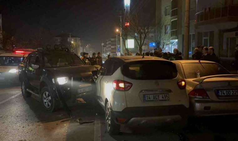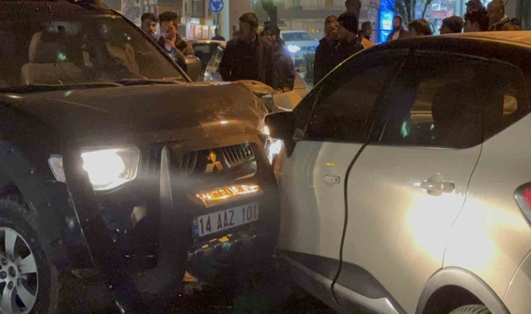 Kaza, Sağlık Mahallesi Çömlekçiler Caddesi üzerinde meydana geldi. Edinilen bilgiye göre, Metin A. yönetimindeki 14 AAZ 101 plakalı pikap, karşı yönden gelen Murat K. idaresindeki 14 ACY 495 plakalı otomobil ile kafa kafaya çarpıştı. Çarpışmanın etkisiyle yolda savrulan araçlar, 74 DD 225 plakalı park halindeki otomobil de hasar verdi. Kazada Murat K. yönetimindeki otomobilde bulunan 3 kişi yaralandı. Durum 112 Acil Çağrı Merkezi’ne bildirildi. İhbar üzerine bölgeye sağlık ve polis ekipleri sevk edildi. Kazada yaralanan vatandaşlar ilk müdahalenin ardından sağlık ekipleri tarafından hastaneye kaldırıldı. Kazayla ilgili inceleme başlatıldı.