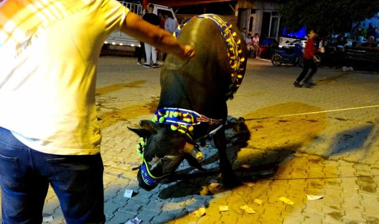 Menteşe ilçesi Algı Mahallesi’nde bu yıl 10’uncusu düzenlenecek boğa güreşi etkinliği öncesi görücüye çıkarılan boğalar, renkli ve heyecan dolu anlara sahne oldu. Köy meydanında davul zurna eşliğinde boğalar piste çıktığında, boğa sahipleri ve yakınları yanlarında getirdikleri paraları havaya savurarak etkinliğe katılanların dikkatini çekti. İzleyiciler, bu anları büyük bir heyecanla izledi ve pehlivan boğaları hayranlıkla takip etti. Ancak boğaların agresif ve güçlü yapıları nedeniyle davulcular paraları toplamakta zorlandı. Boğaların yanına yaklaşamayan davulcular, güvenlik endişesiyle piste atılan paraları toplayamadı.