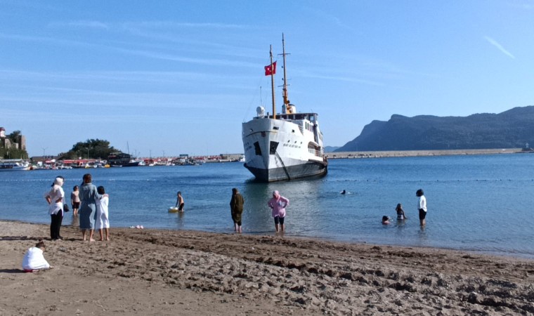 Bartın’ın Amasra ilçesinde halk plajına yüzmeye gelen yerli ve yabancı turistler, kumsalın yaklaşık 10 metre yakınlarında karaya oturan dev restoran-vapuru görünce şaşırdı. Plajda karaya oturan vapurun yetkililerinin, çapa değiştirmek için izin istediği, karaya oturmadan dakikalar öncesinde ise denize elverişli olmadığı yönündeki rapora rağmen liman dışına çıktığı belirlendi.
