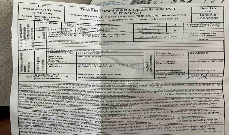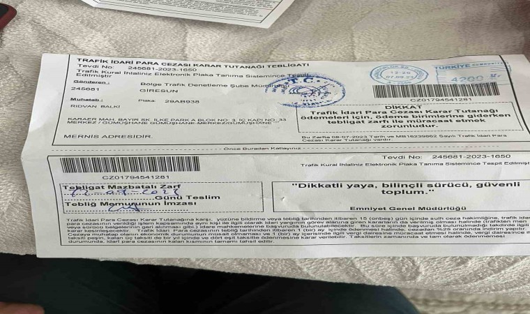Son dönemde kameralar aracılığıyla yazılan cezalarda çıkan sorunlara bir yenisi daha eklendi. Plakası 29 olan Gümüşhane’de yaşayan ve o tarihte de şehirde olan Rıdvan Balki’ye ait aracın plakasına Giresun’da EDS ile ceza yazıldı.