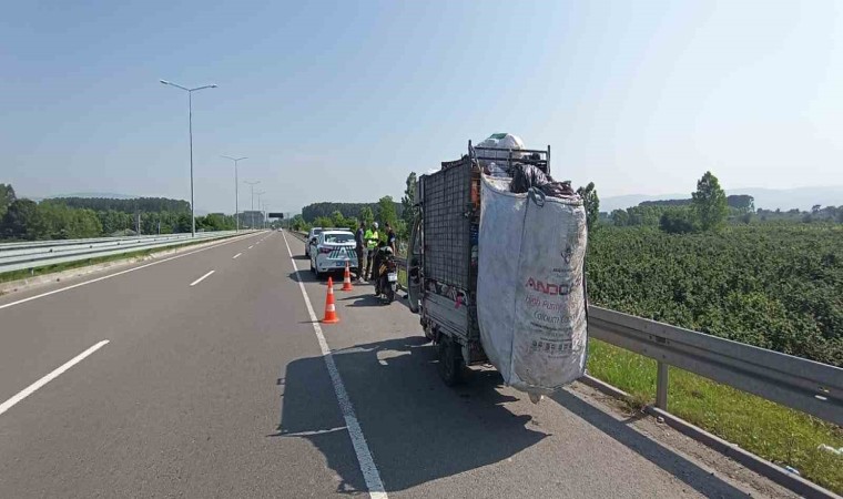 Düzce'de, plakası olmayan bir atık toplama aracına 6 bin 890 TL trafik cezası kesildi. Yapılan kontroller sırasında otoyol bağlantı yollarında plastik, kağıt ve pet şişe gibi atıkları toplayan bir kişi trafik ekipleri tarafından durduruldu. Araç, trafiğe tescilli olmasına rağmen plaka takılı olmadığı tespit edildi ve sürücüye 6 bin 890 TL para cezası verildi.