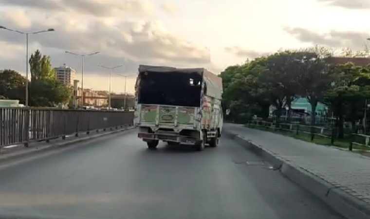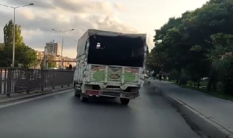 Çevre yolunda tehlikeli hareketlerle seyreden plakasız bir kamyon tepki topladı. Kamyon şoförü, trafikteki araçları umursamadan bir sağa bir sola riskli manevralar gerçekleştirdi. O anlarda diğer sürücüler kamyon şoförünün ne yapmaya çalıştığına anlam veremedi. Plakasız araç tehlikeli hareketleriyle yolu işgal ederek metrelerce ilerlerken, duyarsız sürücünün düşüncesiz hareketleri trafikteki diğer vatandaşları da riske attı. Tepki toplayan o anlar saniye saniye cep telefonu kameralarına yansıdı.