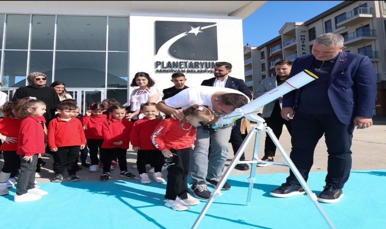 Serdivan Belediye Başkanı Osman Çelik, Dünya Uzay Haftası dolayısıyla belediyeye ait planetaryumda düzenlenen programda anaokulu öğrencileri ile bir araya geldi.