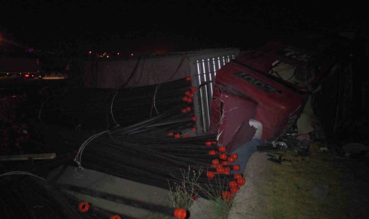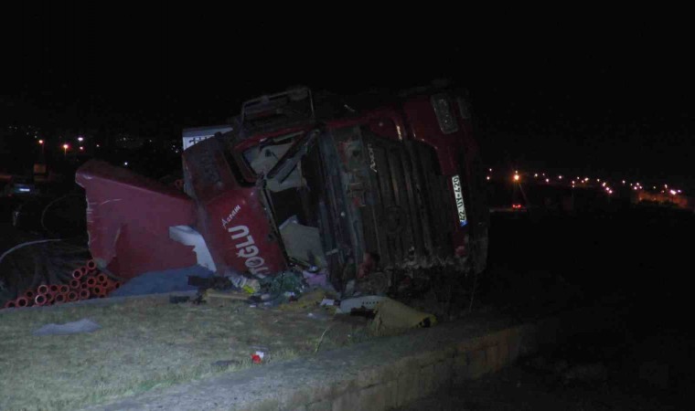 Kayseri-Sivas yolunda plastik boru yüklü tırın devrildiği kazada 1 kişi hayatını kaybetti, 1 kişi de ağır yaralandı.