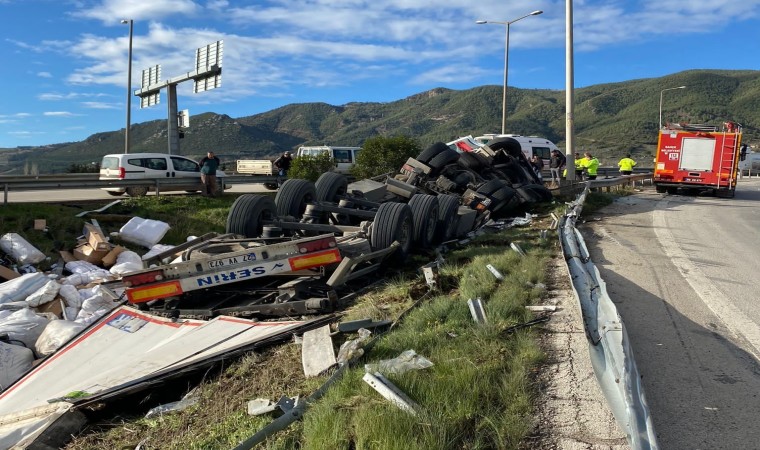 Osmaniye’de plastik malzeme yüklü tır sürücüsünün kontrolünü kaybetmesi sonucu bariyerlere çarparak şarampole devrildi. Sürücünün yaralandığı kazada büyük çapta maddi hasar meydana geldi.