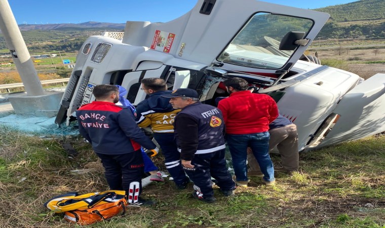 Kaza, Bahçe ilçesi D-400 otoban gişelerine yakın bölgede meydana geldi. Edinilen bilgilere göre, plastik malzeme taşıyan Mustafa Savcılı, yönetiminde 27 VV 972 plakalı tır sürücüsünün henüz belirlenemeyen bir sebepten ötürü direksiyon hâkimiyetini kaybetmesini sonucu kontrolden çıktı. Savrulan tır ardından yol kenarındaki bariyerlere çarparak şarampole devrildi. Bölgede bulunan vatandaşların ihbarı üzerine Bahçe Belediyesi İtfaiye ekipleri olay yerine geldi. İtfaiye ekiplerinin müdahalesi sonucu tır İçerisinde sıkışan şoför Mustafa Savcılı sıkıştığı yerden çıkarılarak, olay yerinde hazır bekleyen sağlık ekiplerine teslim edildi.
