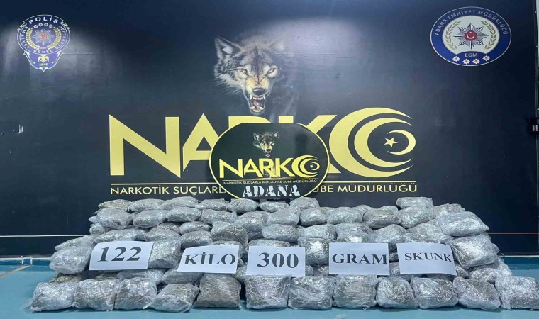 Adana’da narkotik polisinin ‘dur’ ihtarına uymayıp kaçan pikap, kovalama sonucu lastikleri tabancayla vurularak durduruldu. Durdurulan aracın içerisinden 122 kilo 300 gram skunk ele geçirilirken, olayla ilgili 2 kişi tutuklandı.
