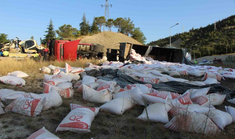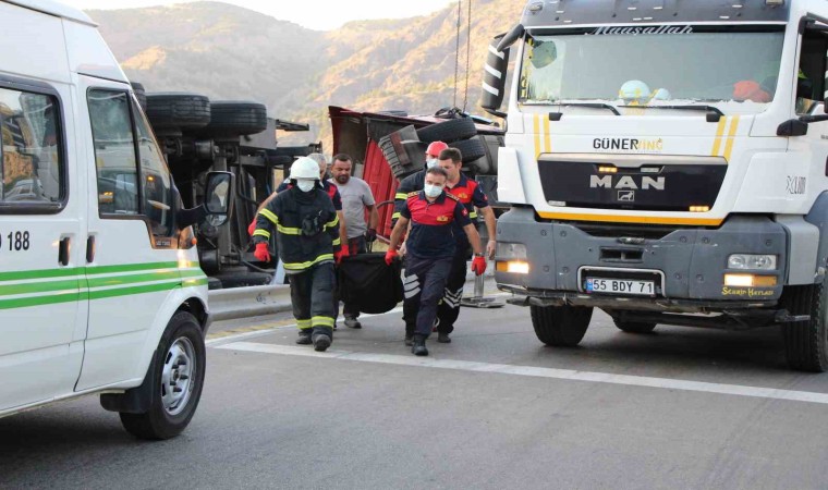 Amasya’da devrilen un yüklü tırın sürücüsü hayatını kaybetti. Genç sürücünün çalan telefonunu açan polis, acı haberi sürücünün babasına söyleyemedi.