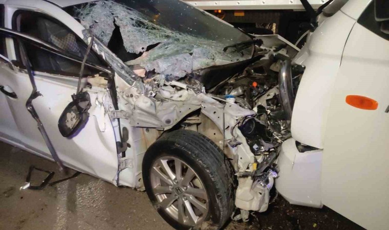 Bursa’nın Orhangazi ilçesinde polis memuru çiftin içinde olduğu otomobil önce traktörle, ardından savrularak bir kamyonetle çarpıştı.