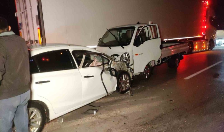 Kaza, saat 19.30’da Orhangazi-İznik karayolu Üreğil Mahallesi kavşağı yakınlarında meydana geldi. Edinilen bilgilere göre, Orhangazi’den İznik istikametine seyir halinde olan Muhammet Emin D. (22) idaresindeki 23 HR 132 plakalı otomobil, zeytin taşıyan Burhan K. (46) idaresindeki 77 AAR 619 plakalı traktörün römorkuna çarptı. Savrulan otomobil, karşı yönden gelen İskender S. (39) idaresindeki 16 BJZ 850 plakalı kamyonetle çarpıştı. Kazada ikisi de polis memuru olan Muhammet Emin D. ile eşi Gülden D. (20) yaralandı. İhbar üzerine olay yerine sağlık ekipleri sevk edildi. İlk müdahaleleri olay yerinde yapılan yaralı çift, ambulansla Orhangazi Devlet Hastanesine kaldırıldı. Yaralıların hayati tehlikesinin bulunmadığı öğrenildi.