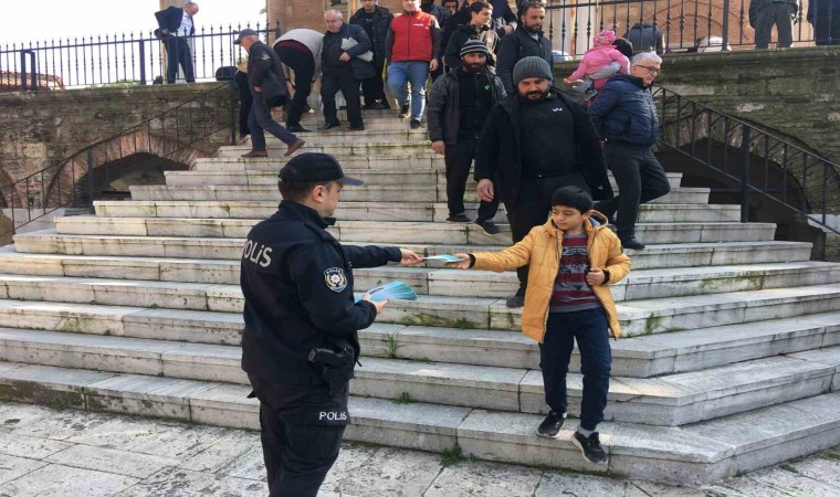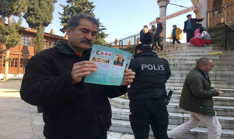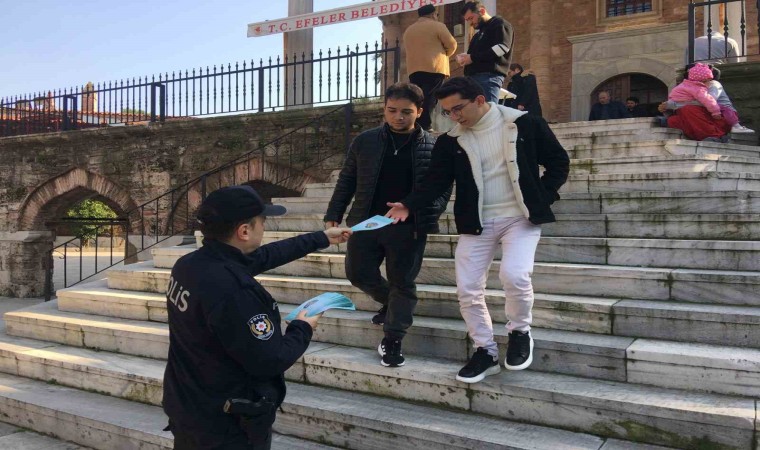 Aydın’ın Efeler ilçesinde Cuma namazı çıkışında polisler tarafından vatandaşlara, dolandırıcılık konusunda bilgilendirici broşür dağıtıldı.