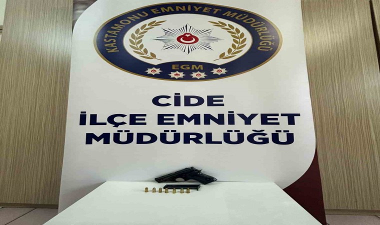 Kastamonu’nun Cide ilçesinde şüphe üzerine durdurulan araçta polis ekiplerince yapılan aramada ruhsatsız silah ile silaha ait fişekler ele geçirildi.
