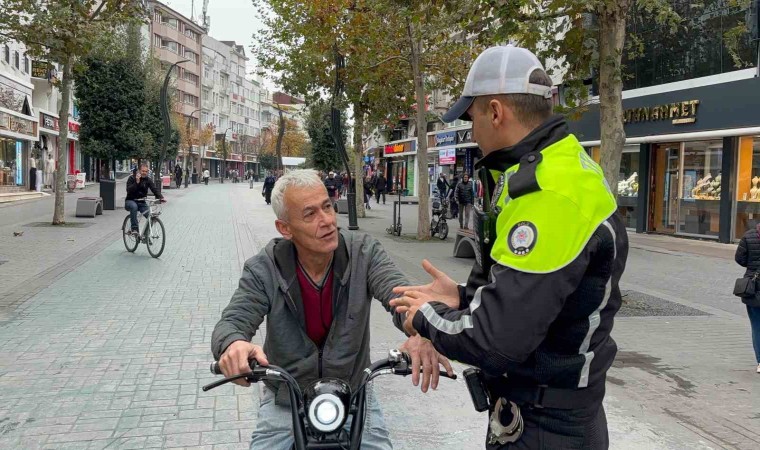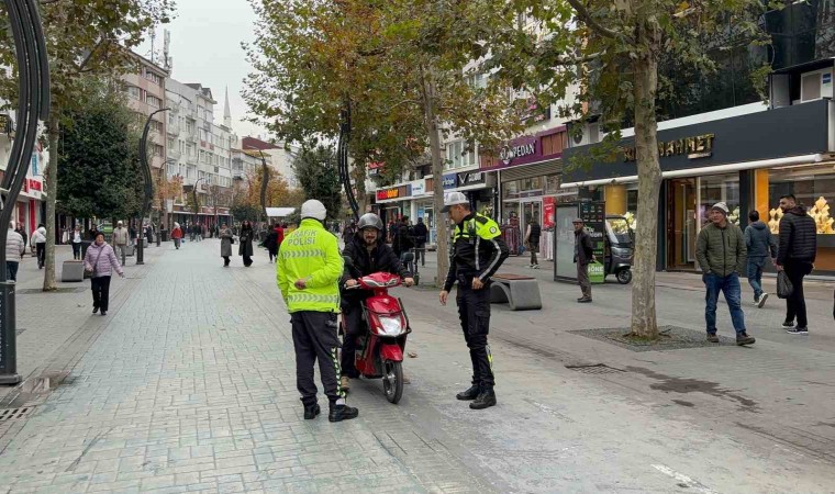 Bolu’da polis ekipleri, motosiklet ve elektrikli araçların girmesinin yasak olduğu İzzet Baysal Caddesi’ne sürücülere göz açtırmadı.