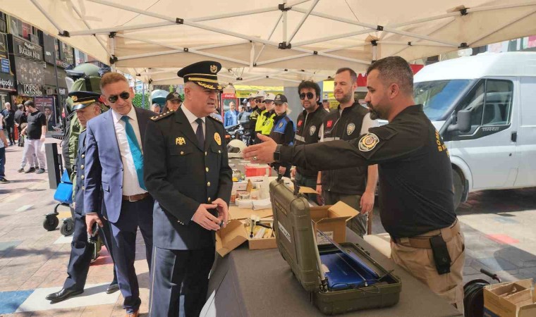 Karabük’te Polis Haftası etkinlikleri çerçevesinde kent merkezinde kurulan stantla polis teşkilatının projeleri kullandığı teçhizatlar vatandaşlara tanıtıldı.