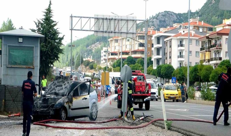 Edinilen bilgiye göre Muğla’nın Menteşe ilçesi girişinde buluna polis kontrol noktasında hareket halindeki 48 EE 543 plakalı otomobilin motor bölümünde dumanlar yükselmeye başladı sürücü aracını polis kontrol noktası yakınına park ederek aracı terk etti. Araç yangını sonrası Muğla 112 acil çağrı merkezine bilgi verildi. Muğla Büyükşehir Belediyesine ait 1 acil müdahale ve 1 itfaiye aracı olay yerine sevk edildi. Polis ekipleri araç çevresinde güvenlik önlemi alırken, Yatağan girişi tedbir amaçlı trafiğe kapatıldı. İtfaiye ekipleri yanan araca yaptığı müdahale sonrası tamamen söndürüldü, soğutma çalışması gerçekleştirildi ekipler tarafından yangının çıkış sebebi araştırılıyor.