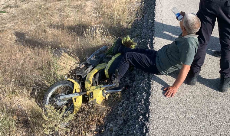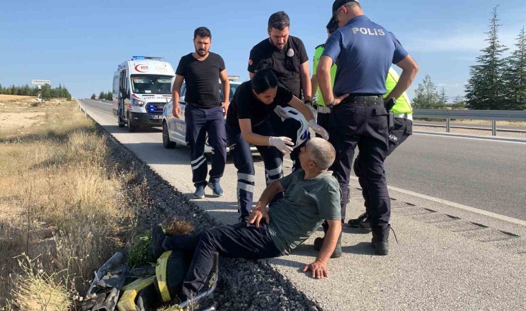 Karaman’da kontrolden çıkan motosikletin devrilmesi sonucu meydana gelen kazada ayağı kırılan motosiklet sürücüsüne, ambulans gelene kadar polis memuru destek oldu.