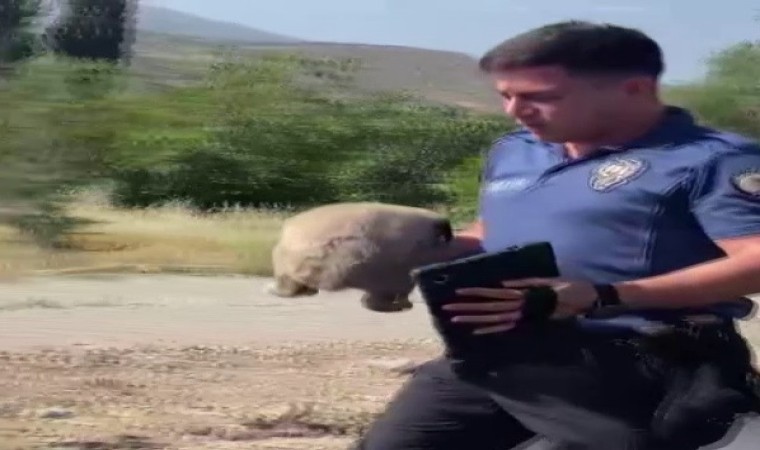 Adıyaman’ın Gölbaşı-Malatya karayolu üzerinde uygulama yapan polis ekipleri, yavru bir köpeğin aniden yola fırladığını fark etti. Polis memuru, araçların yoğun şekilde geçtiği karayoluna çıkan köpeğin peşinden koşmaya başladı. Polis memuru bir yandan köpeği yakalamaya çalışırken bir yandan da araç sürücülerini durmaları konusunda uyarıda bulundu.