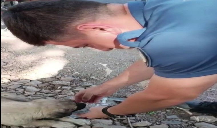 Yavru köpek araçların altında kalmaktan polis memuru sayesinde kurtuldu. Polis memuru yakalayıp kucağına aldığı yavru köpeği bir ağaç gölgesinde dinlendirdi. Su verilen köpek daha sonra polis memurları tarafından kara yoluna uzak bir bölgeye bırakıldı.