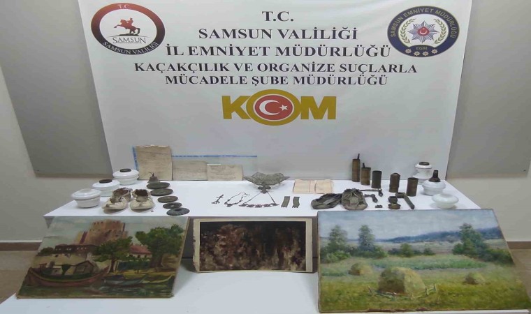 Edinilen bilgiye göre, Samsun Emniyet Müdürlüğü Kaçakçılık ve Organize Suçlarla Mücadele (KOM) Şube ve İlkadım İlçe Emniyet Müdürlüğü ekipleri, İlkadım ilçesi Ankara yolu polis uygulama noktasında rutin yapılan uygulama sonucunda durdurulan bir araçta tamamı tarihi (etnografik) eserler olduğu değerlendirilen 4 adet yağlı boya tablo, 2 adet deriden yapılmış çarık, 5 adet Osmanlıca belge, 2 adet metal bileklik, 2 adet metal kolye, 1 adet haç roliker, 1 adet metal kemer tokası, 1 adet metal süs sallantısı, 2 adet divit, 1 adet sunum tabağı, 5 adet metal el değirmeni, 2 adet değirmen kolu, 1 adet değirmen kolu kapağı, 5 adet ağırlık- okka, 6 adet gaz lambası haznesi, 1 adet metal gaz lambasının parçası ve 1 adet çan ele geçirildi.