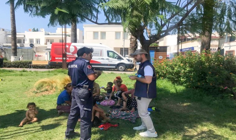 Muğla’nın Bodrum ilçesinde polis ve zabıta ekipleri, turizm yoğunluğu olan bölgelerde hanutçuluk ve dilencilik konuları başta olmak üzere ilçe güvenliğini sağlamak için ortak uygulama gerçekleştirdi.