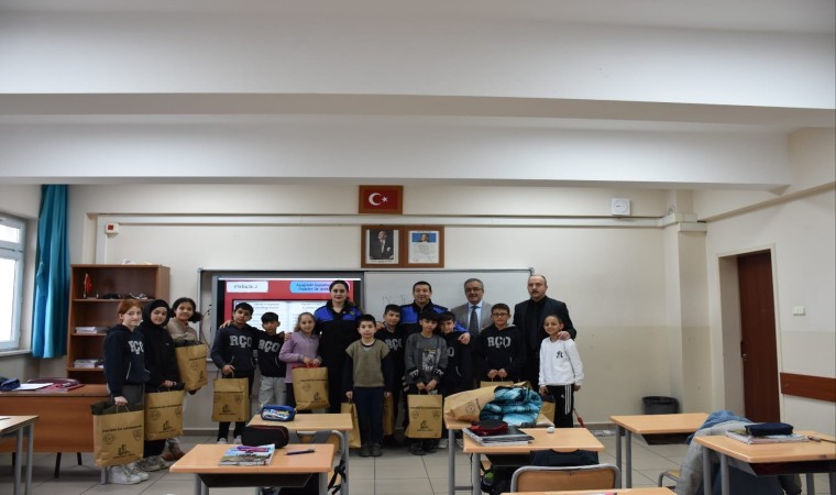 Kastamonu İl Emniyet Müdürlüğü ekiplerince başlatılan "Polisim İle Güvendeyim" projesi çerçevesinde öğrencilere bot ve mont hediye edildi.